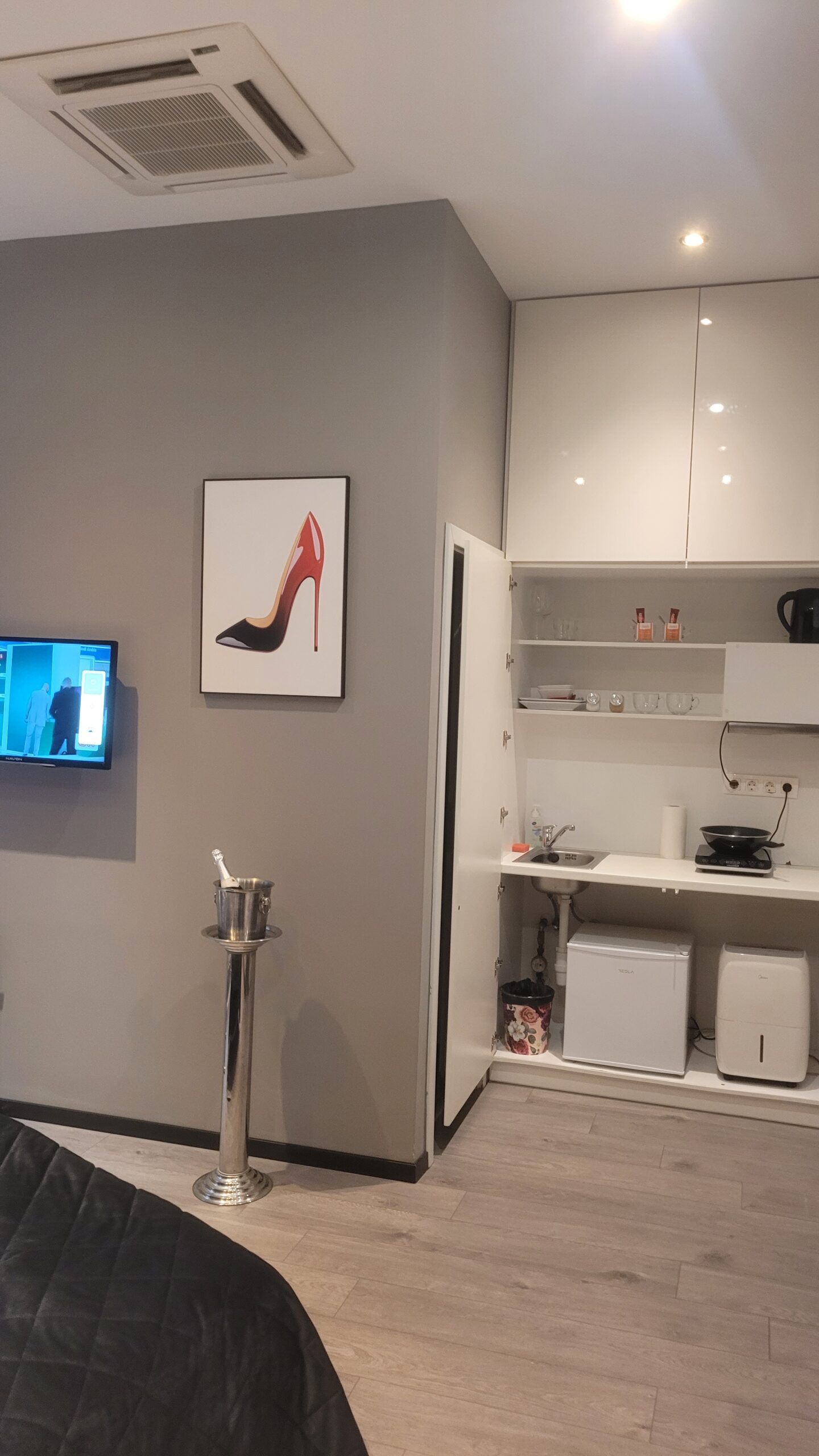 Boasting a private entrance, this air-conditioned apartment includes a kitchenette, 1 bedroom and 1 bathroom with a shower and a hairdryer. The kitchenette has a stovetop, a refrigerator, kitchenware and an electric kettle. Featuring a terrace, this apartment also offers a wardrobe, heating and a flat-screen TV.